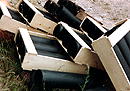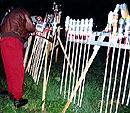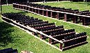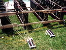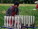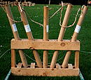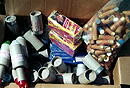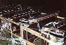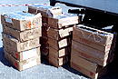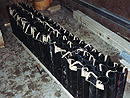 Als erstes sind alle Bombetten-Gestelle, Holzgestelle mit Mörserrohren ("Racks") sowie zahllose Holzlatten und Eisenstangen vom LKW abzuladen. Die Kisten mit Feuerwerkskörpern (Bomben, Bombetten, China-Feuerwerksbatterien, Raketen, Frontstücke usw.) werden an sicherer Stelle zwischengelagert. |