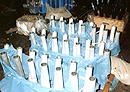 Vor einem nächtlichen Feuerwerk steht stunden-, meist sogar tagelange Arbeit. Die folgende Fotoserie zeigt den typischen Ablauf der Vorbereitungen für ein Großfeuerwerk. Die Reihenfolge der Arbeitsschritte ist abhängig von Art und Größe des Abbrennplatzes und des Feuerwerks, vom Wetter und der Personen-Anzahl der "Pyro-Crew". Zum Vergrößern der Bilder klicken Sie bitte die entsprechende Vorschau an. Die Bilder haben jeweils eine Größe von etwa 15-55KB. Unbekannte Begriffe können Sie im FEUERWERK Lexikon (im Kapitel Technik) nachschlagen. |
