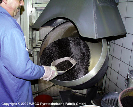 ROLLTROMMELN DURCH SCHRITTWEISE ZUGABE VON PYROT. SATZ HERGESTELLT