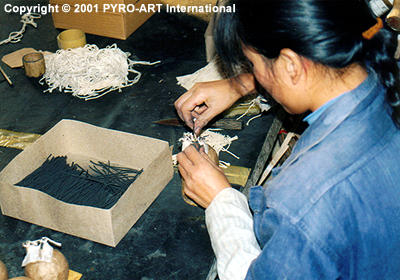 IN DEN SPALT WIRD EIN STÜCK SCHWARZPULVER-STOPPINE GEKLEMMT: