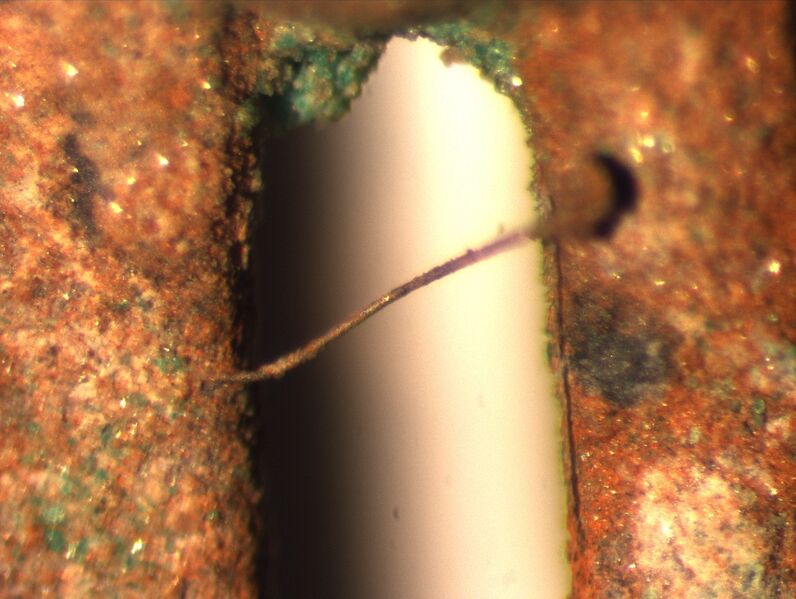 Version vom 4. September 2015, 10:12 Uhr von Matchbox (Diskussion | Beiträge) (Die grünen Kristalle sind wohl ein Reaktionsprodukt des Zündsatzes und Metalls.)