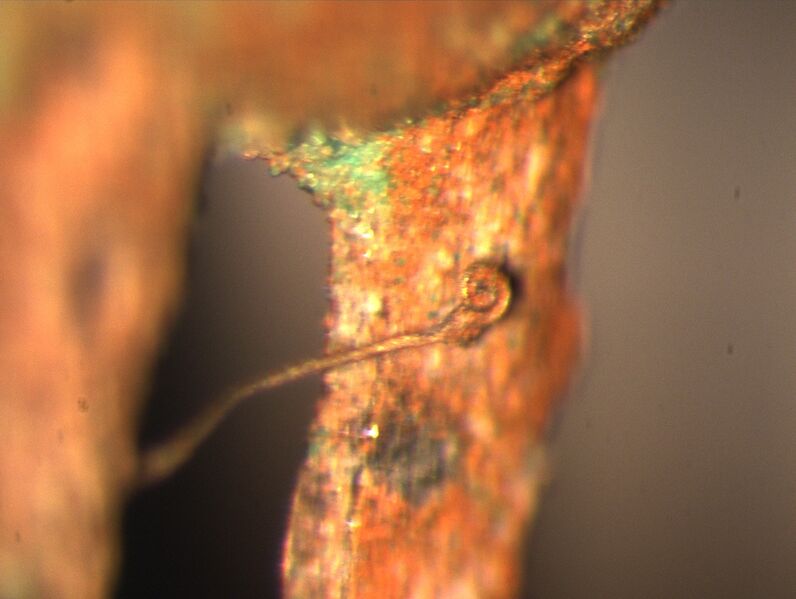 Version vom 4. September 2015, 10:12 Uhr von Matchbox (Diskussion | Beiträge) (Glühdrahtschnecke mit darunter liegendem Schweißpunkt auf rechter Lamelle.)